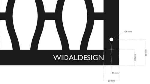 De 3 hålen per sida är placerade i designramen och har en diameter på 8 mm.