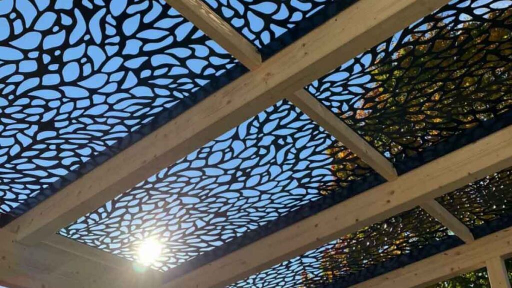 Utrusta enkelt din pergola eller altan med ett tak i metall – ett pergolatak som har ett vackert utskuret mönster som skapar ljusinsläpp och vackra skuggor. Möjligheterna är många, täck hela eller delar av pergolataket och sätt en matchande skärm på en eller flera sidor för att skydda mot både vind och insyn och få ett uterum. Vi hjälper dig att ta fram anpassade mått som passar just din pergola/altan. OBS! denna produkt är endast tillgänglig för B2B/företagskunder.